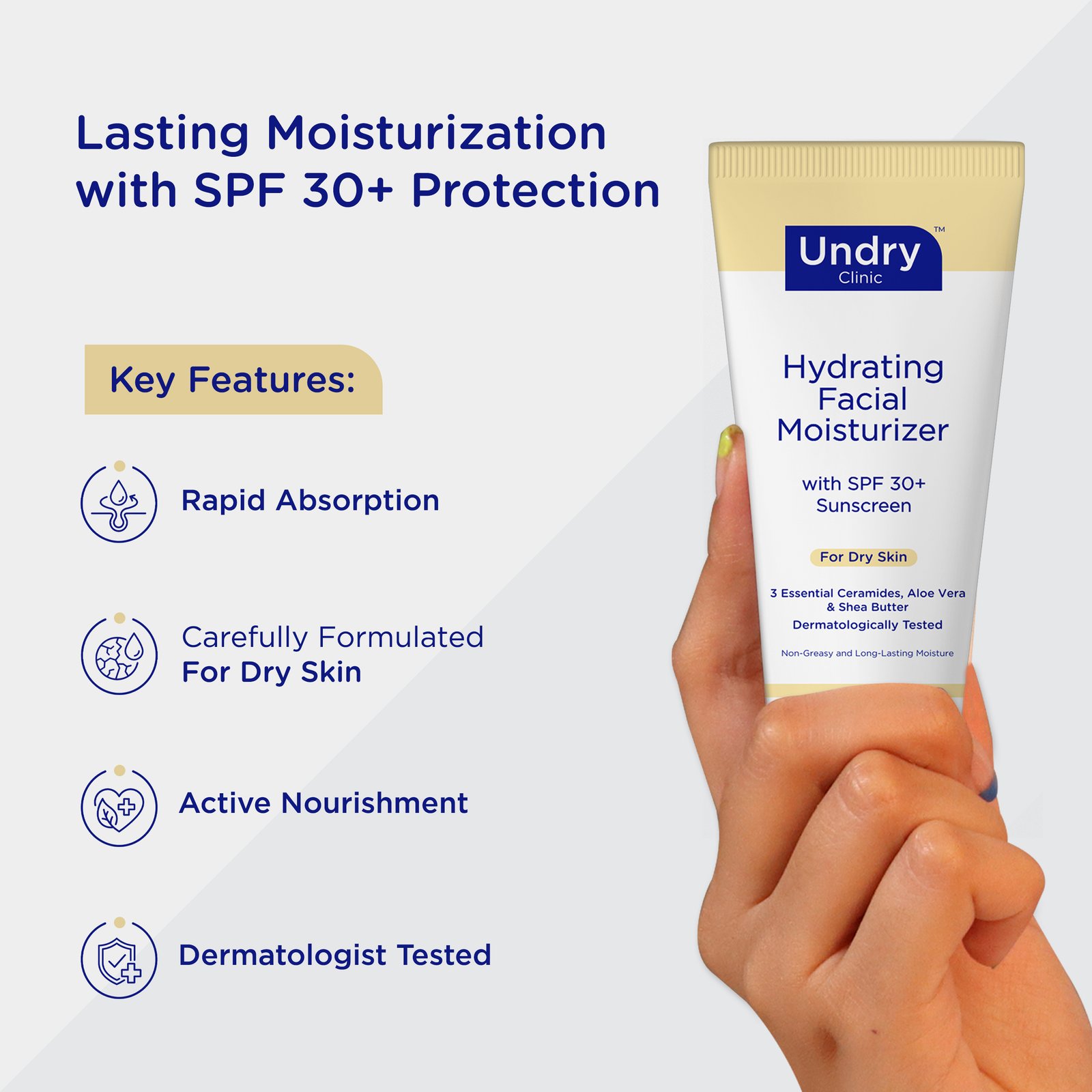 Undry Hydrating Moisturizer SPF 30+ + Sunscreen SPF 50+ Combo for Dry Skin